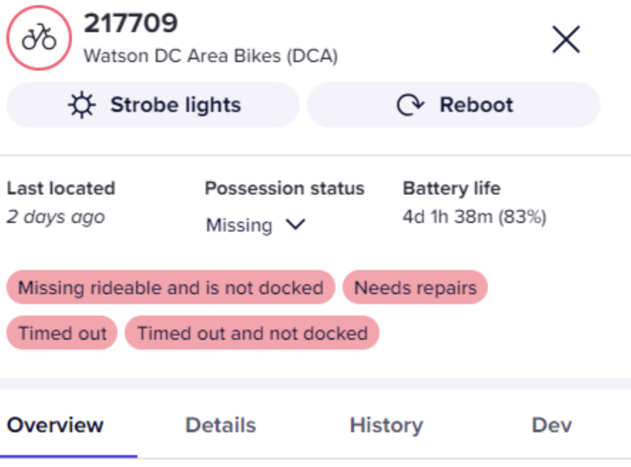 11. Open a second AC tab, search the Rideable ID, and open the bike's details